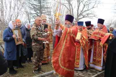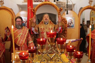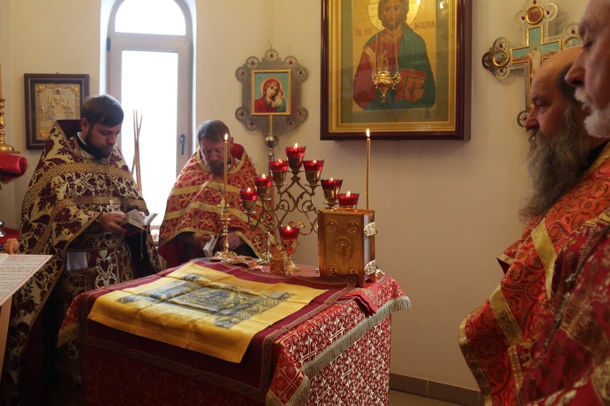 Его Преосвященству сослужили: протоирей Александр Коваленко,секретарь Находкинской, настоятель храма вмч. Георгия Победононосца п. Дунай; протоиерей Павел Петрунин, настоятель храма в честь Казанской иконы Божией Матери с. Казанка; иерей Андрей Калнин, ризничий Казанского собора г. Находки; иерей Иоанн Капитанюк, настоятель храма Рождества Христова г. Находки; иерей Андрей Шкулипа, настоятель храма прп.Сергия Радонжского с. Сергеевка.