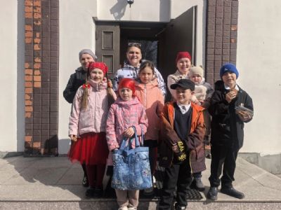 Пасхальную радость принесли раненым бойцам в военный госпиталь юные прихожане Храмов г. Фокино и г. Большой Камень.