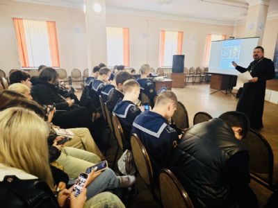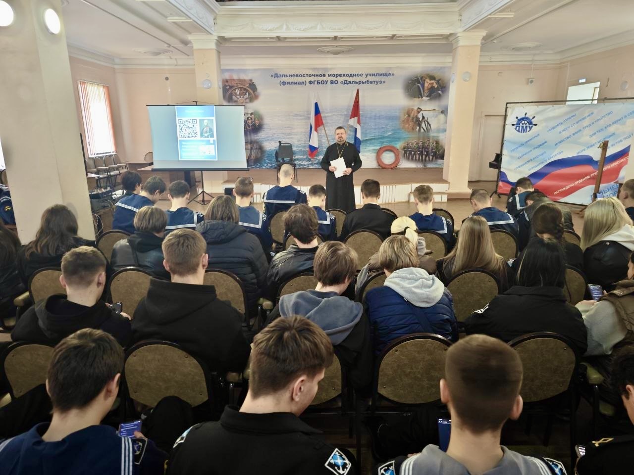 Священник провел лекцию об адмирале Федоре Ушакове в Дальневосточном мореходном училище.