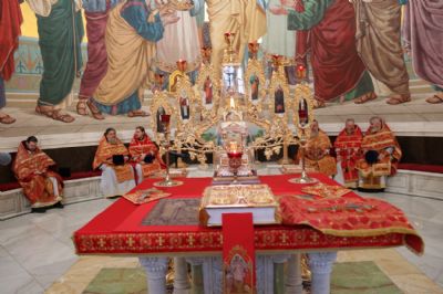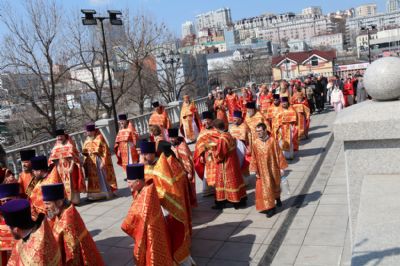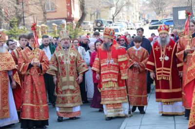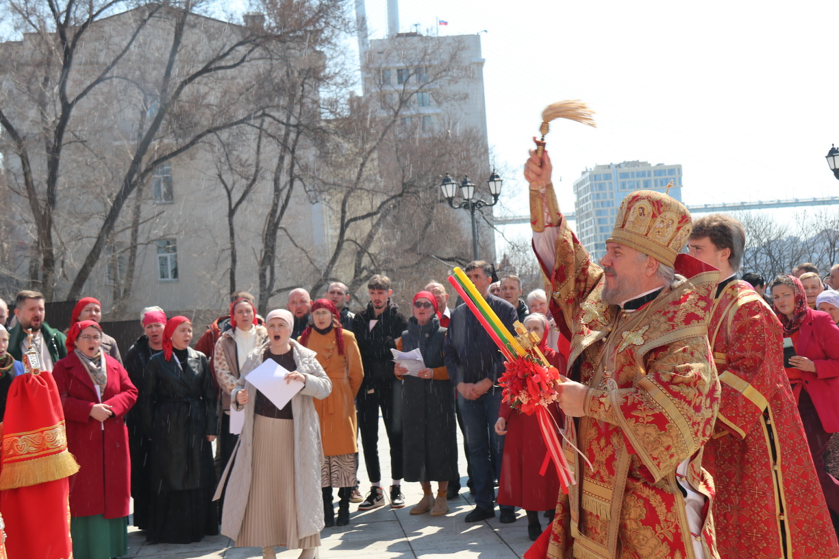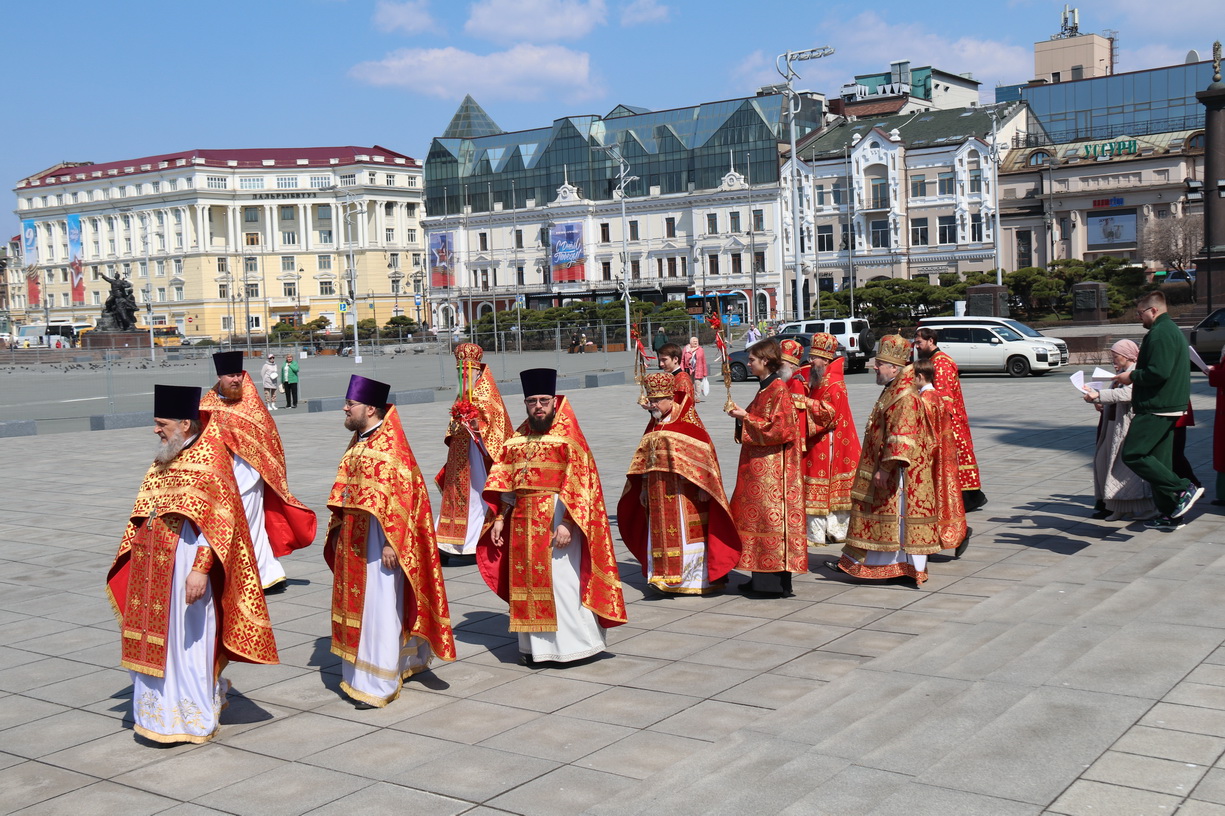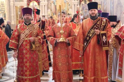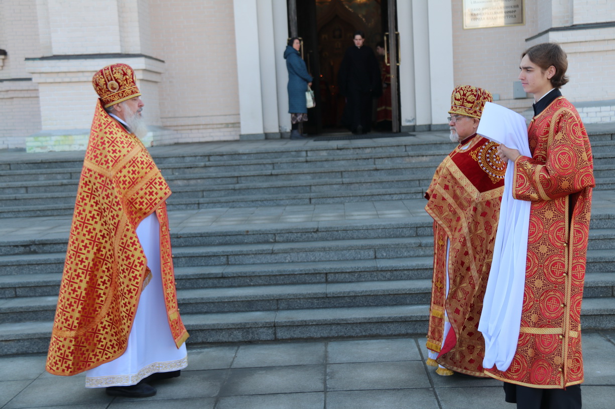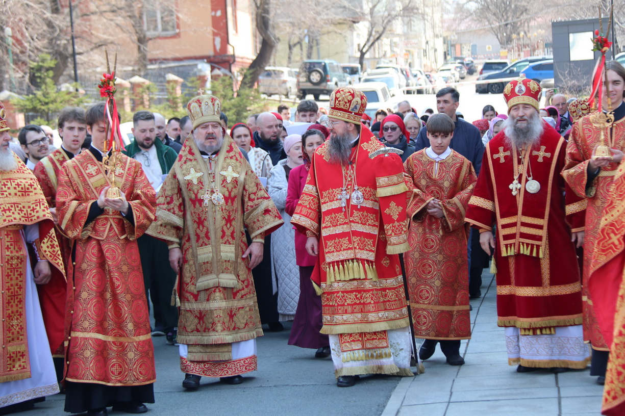 18 апреля, в субботу Светлой седмицы, в Спасо-Преображенском соборе г. Владивостока состоялась соборная Божественная литургия. Богослужение возглавили митрополит Владивостокский и Приморский Павел, митрополит Вениамин (Пушкарь), епископ Находкинский и Преображенский Николай, епископ Арсеньевский и Дальнегорский Гурий.