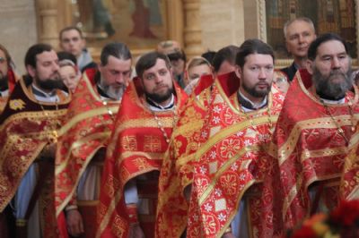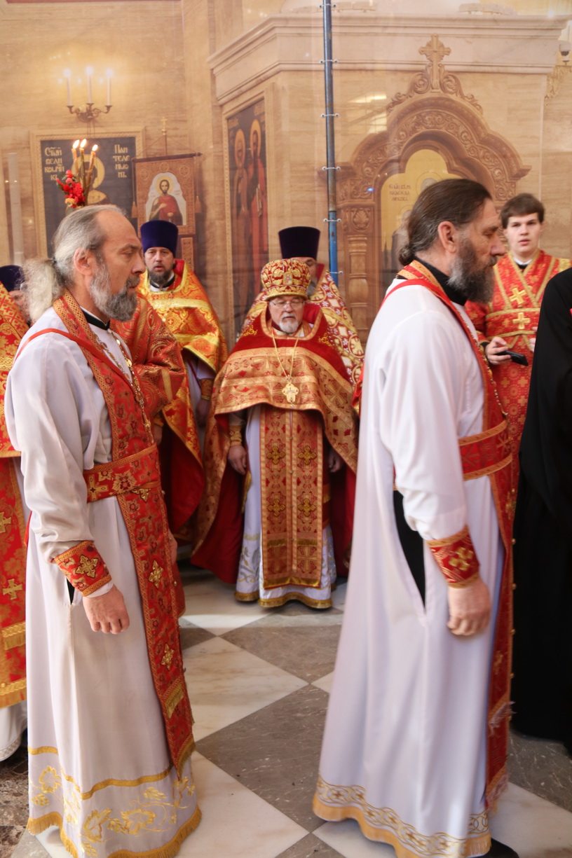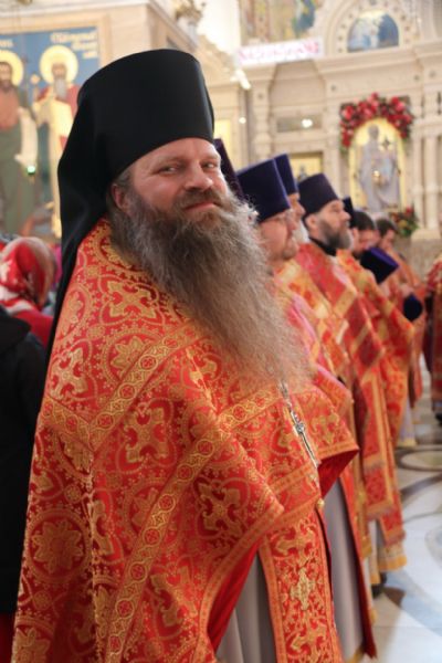 Архипастырям сослужили: протоиерей Игорь Талько, протоиерей Владимир Капитанюк, секретарь Владивостокской епархии иерей Илия Талько, благочинный Никольского благочиния иерей Михаил Тутаев, ключарь собора иерей Максим Точуков, протоиерей Ростислав Мороз, протоиерей Александр Талько, благочинный Артемовского благочиния протоиерей Сергий Бирюк, протоиерей Максим Романенко, игумен Антоний (Каменчук), протоиерей Анатолий Колесников, благочинный Уссурийского сельского благочиния протоиерей Сергий Якутов и другие клирики Владивостокской епархии.