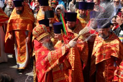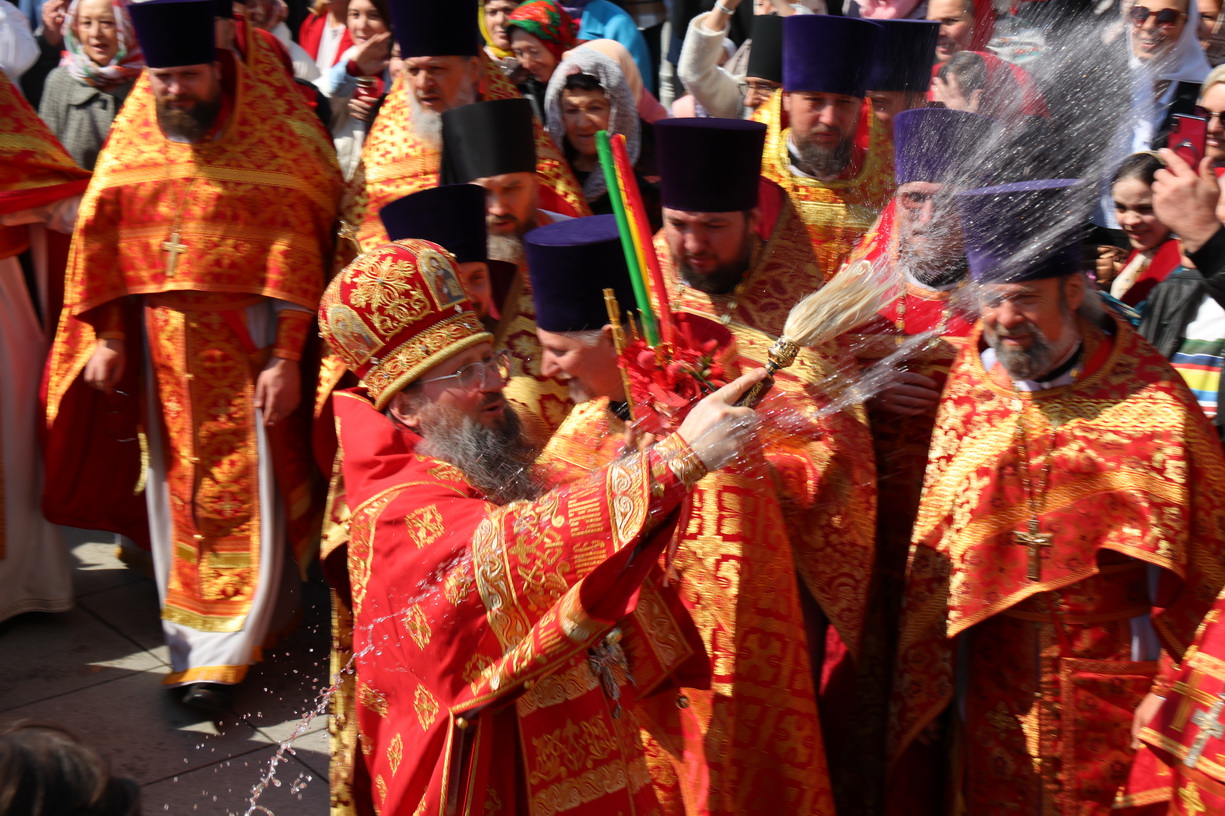 После того, как верующие причастились Святых Христовых Тайн, архиереи с духовенством и прихожанами совершили крестный ход вокруг храма, славя Воскресение Христово. Во время крестного хода было прочитано Воскресное Евангелие, все участники молитвенного шествия были окроплены святой водой.