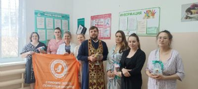 Священник поздравил женщин с Пасхой Христовой и окропил святой водой. Пожелал будущим мамам сил духовных и телесных в воспитании детей, вручил иконочки с молитвой и подарки с детскими принадлежностями.