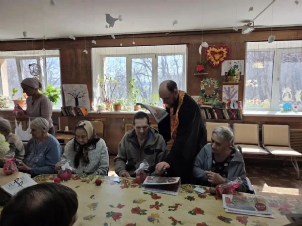 13 апреля состоялась миссионерская поездка прихода храма Богоявления г. Артема в пансионат «Наши Гости». Настоятель храма иерей Дионисий Ищенко и иерей Вадим Родин вместе с сёстрами милосердия, певчими и помощником настоятеля посетили подопечных учреждения, чтобы разделить с ними праздник Светлого Христова Воскресения.