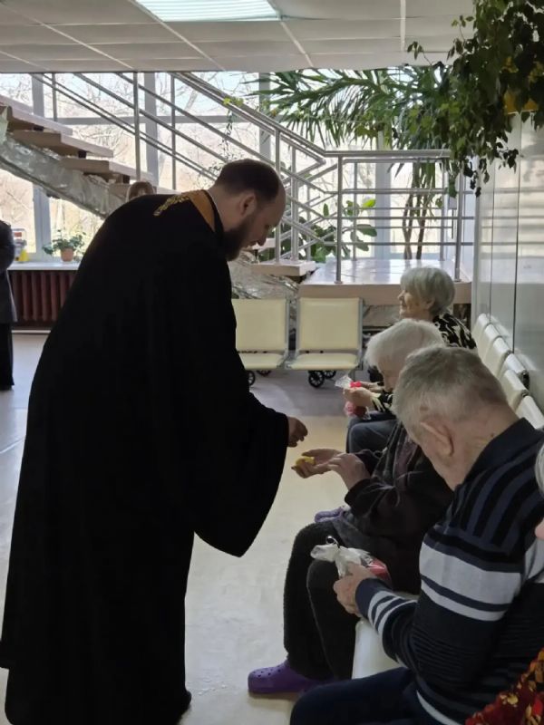 В стенах пансионата был совершён пасхальный молебен. Радостное пение тропаря «Христос Воскресе!» наполнило зал особой атмосферой. Священнослужители обратились к собравшимся со словом проповеди, в которой рассказали о духовном смысле Воскресения Господня, победе жизни над смертью и значении праздника Пасхи для каждого христианина.