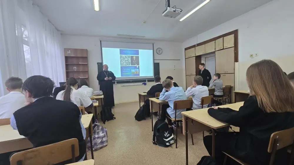 Руководитель Отдела религиозного образования и катехизации Находкинской епархии иерей Роман Капитанюк встретился с учащимися 7-х и 8-х классов СОШ № 4 г. Большой Камень.