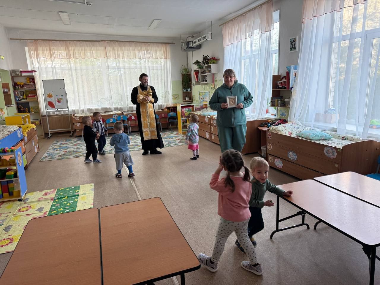 В будущем в «Русской избе» планируется проводить занятия с воспитанниками. Здесь они смогут послушать Святое Евангелие, подаренное о. Даниилом в прошлые встречи с руководством детского сада, и узнать о святых образах.
