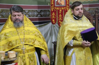 Его Преосвященству сослужили: иерей Владислав Матвеев, настоятель храма ап. Петра; иерей Роман Капитанюк, благочинный Западного благочиния Находкинской епархии, настоятель храма св. апостола Андрея Первозванного ЗАТО г. Фокино; иерей Алексий Пикулин настоятель храма Иверской иконы Божией Матери пгт. Смоляниново; иерей Иоанн Капитанюк. настоятель храма Рождества Христова г. Находки; иерей Алексий Усанов, клирик храма св. апостола Андрея Первозванного.