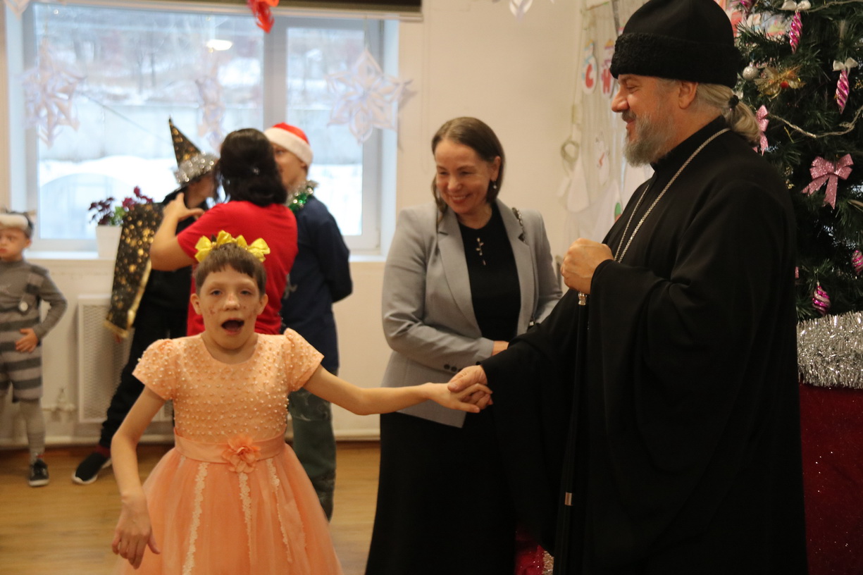 23 декабря 2025 года епископ Находкинский и Преображенский Николай посетил Екатериновскийдетский дом-интернат для инвалидов «Солнышко». Владыка побывал на новогоднем утреннике, который подготовили воспитатели с детьми, передал рождественские гостинцы и наборы для творчества.