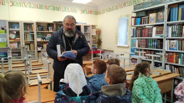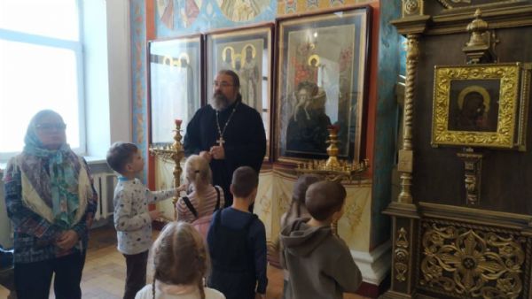 Настоятель храма, иерей Илия Точуков, рассказал детям о святынях храма и показал воскресную школу. Особое внимание отец Илия уделил Порт-Артурской иконе Божией Матери и картине «Видение отроку Варфоломею», будущего Сергия Радонежского, покровителя школьников и студентов.