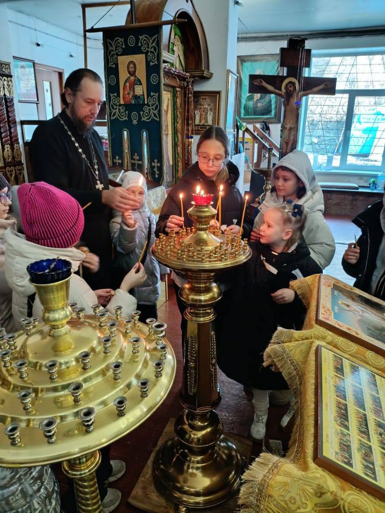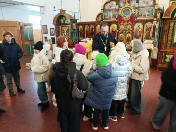 Настоятель храма, иерей Андрей Мельников, провел для школьников экскурсию. Отец Андрей рассказал историю прихода и об особо почитаемых святынях храма. Для многих ребят это было первое посещение дома Божьего.
