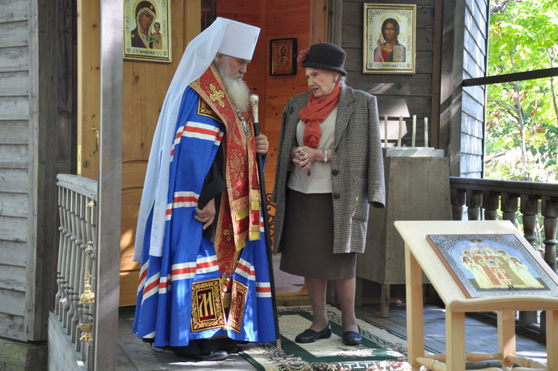 За богослужением молилась находящаяся во Владивостокской епархии с визитом Ольга Николаевна Куликовская-Романова, председатель Благотворительного фонда имени Ея Императорского Высочества Великой Княгини Ольги Александровны, вдова Тихона Николаевича Куликовского-Романова, племянника св. Царя-страстотерпца Николая II.