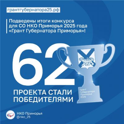 В этом году победителями стали 6??2?? некоммерческие организации Приморского края. Всего на конкурс поступило 109 заявок.