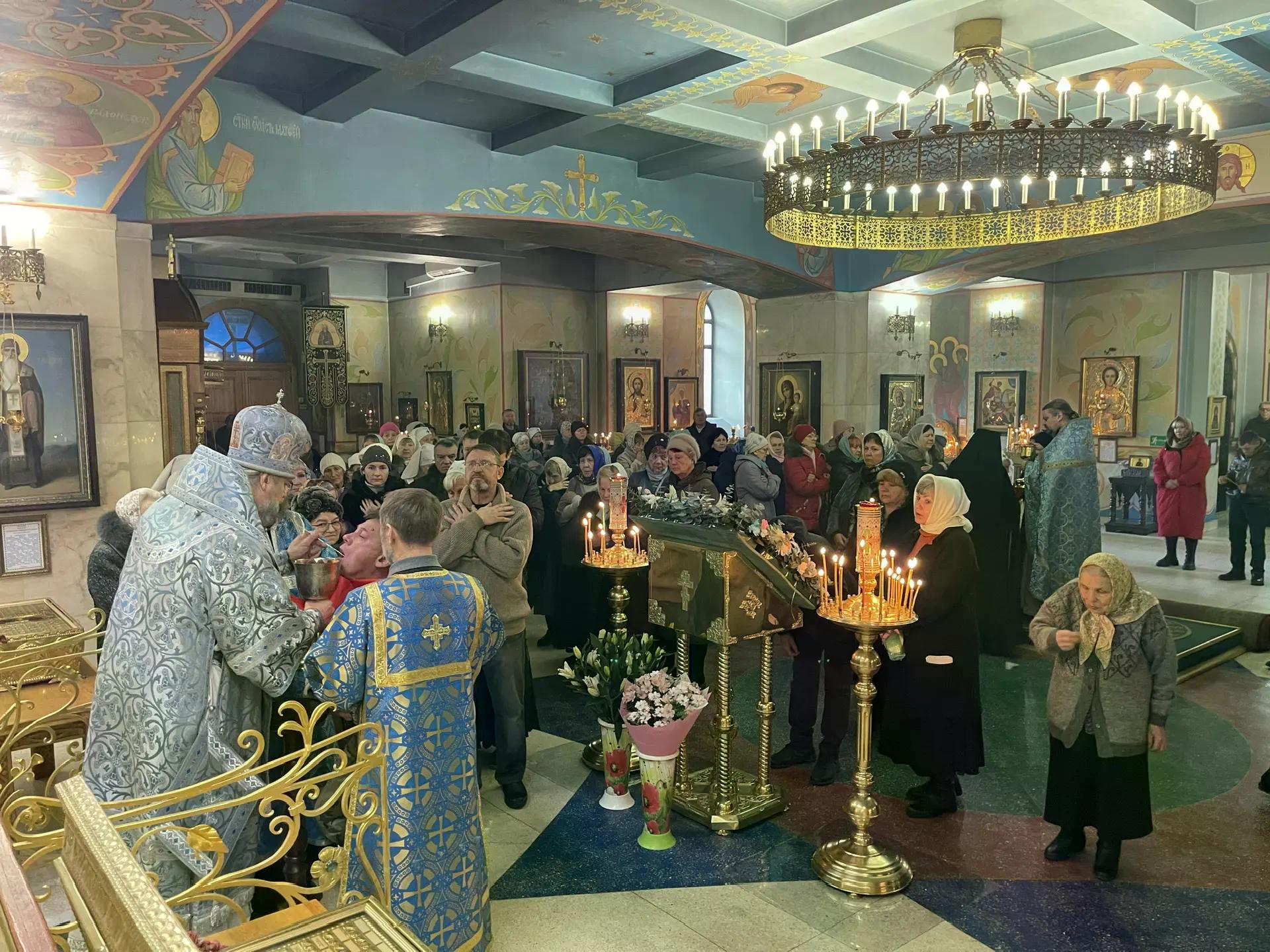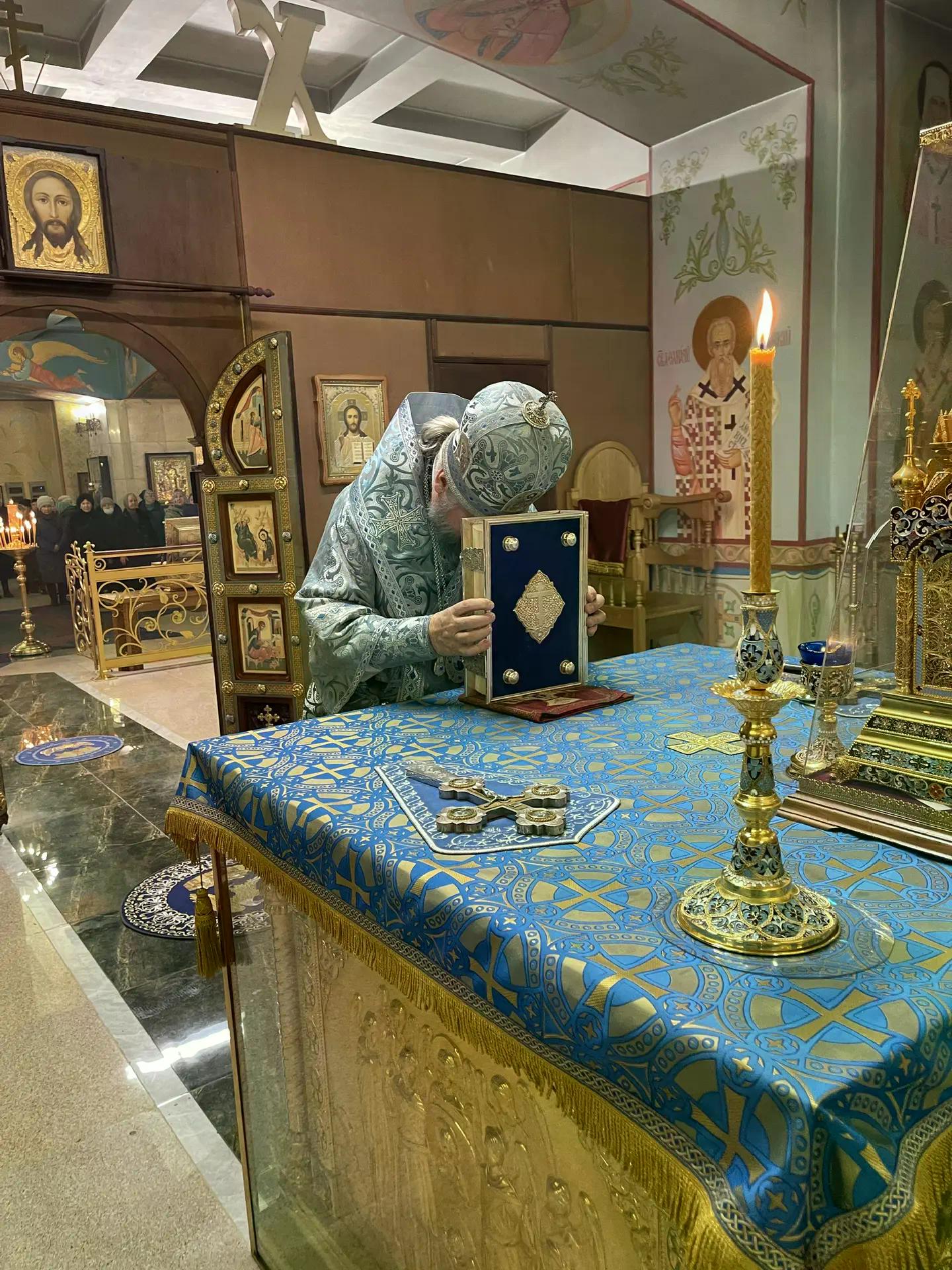 По заамвонной молитве епископ Николай, в сослужении духовенства Собора, возглавил праздничное славление Богородице и обратился к прихожанам храма с архиерейским словом, в котором в частности сказал: «Пречистый храм Спасов, многоценный чертог и Дева, священное сокровище славы Божия, днесь вводится в дом Господень, благодать совводящи, Яже в Дусе Божественном, Юже воспевают Ангели Божии: Сия есть селение Небесное, – такие удивительные слова слышали мы в кондаке праздника Введения.
