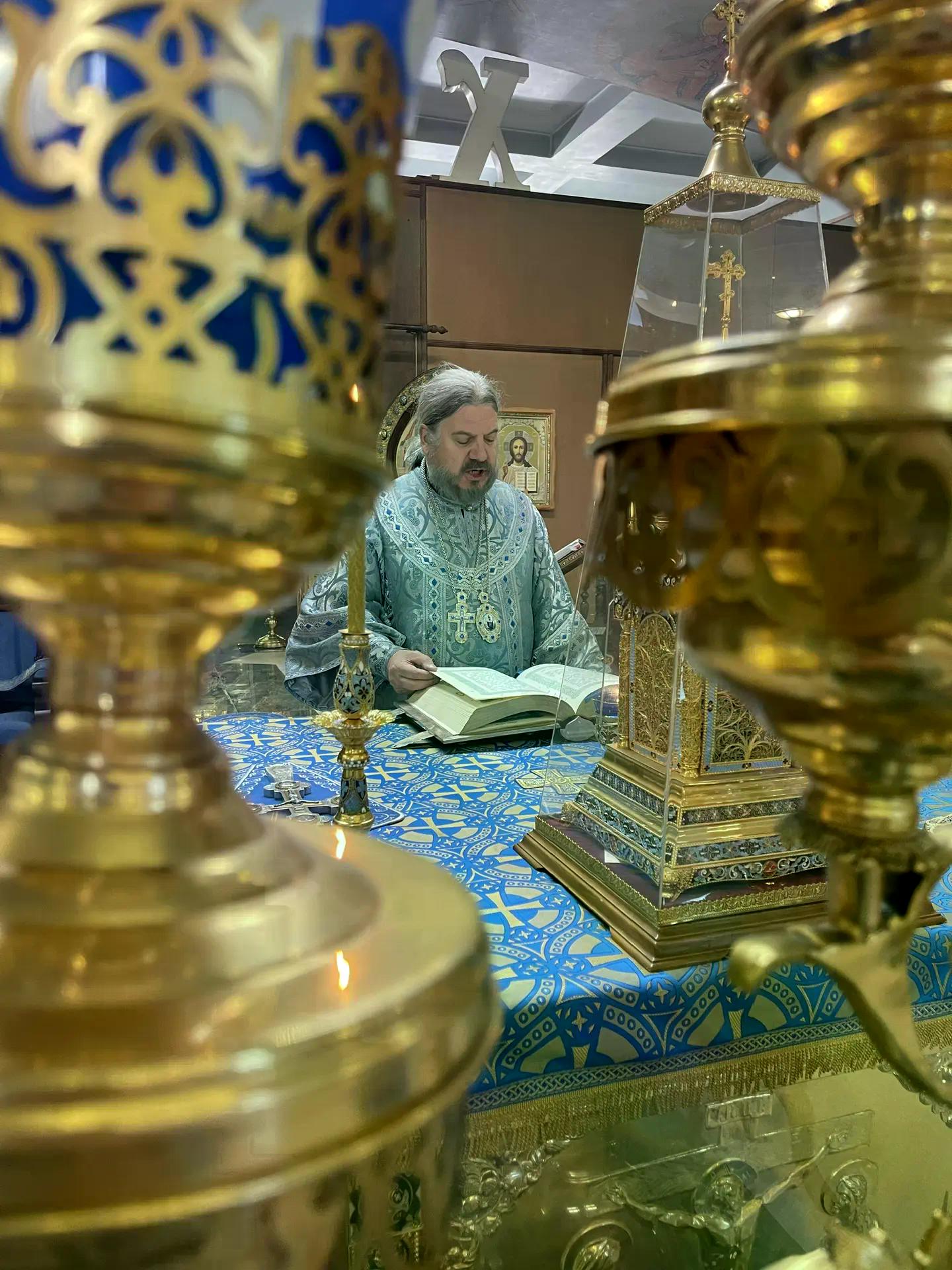 Его Преосвященству сослужили клирики Казанского собора.
