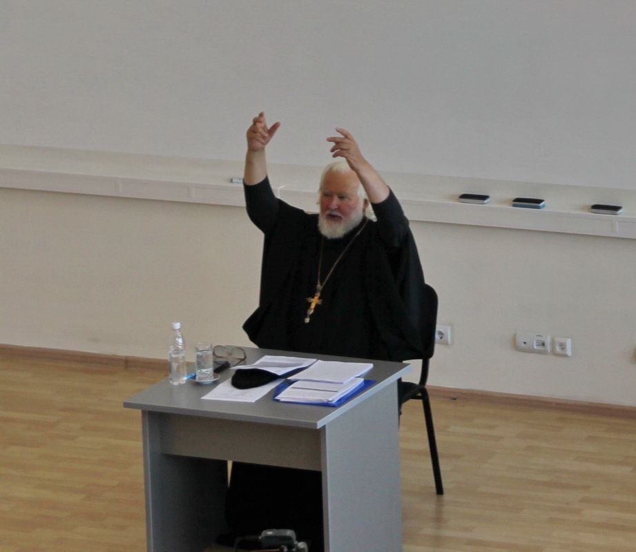 Доктор богословия НС, профессор, ректор Православного Свято-Тихоновского гуманитарного университета (г.Москва) протоиерей Владимир Воробьев прочитал спецкурс «Таинство Евхаристии в Православной Церкви" и после небольшого перерыва "Таинство Брака в Русской Православной Церкви». Лекция вызвала много вопросов, на которые о. Владимир отвечал более часа.
