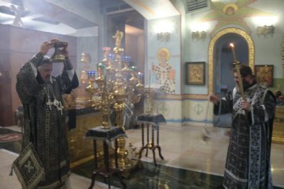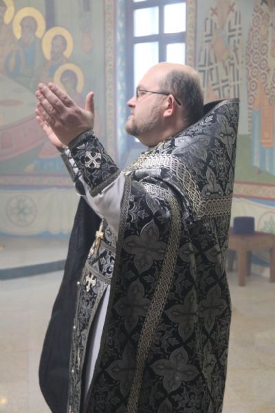Его преосвященству сослужил иерей Роман Капитанюк, настоятель храма святого апостола Андрея первозванного и иерей Илия Гречишников.
