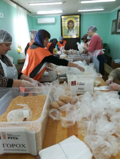 Владивосток. 2 марта 2018 г. в рамках Всероссийского добровольческого проекта «Народный обед», который реализуют Фонд продовольствия «Русь» и служба помощи «Милосердие» прошла очередная фасовка «народного обеда». Фасовали на приходе собора Покрова Божией Матери.