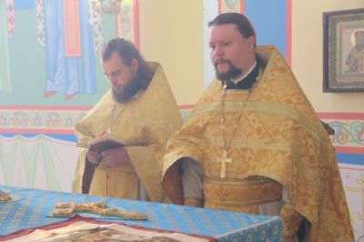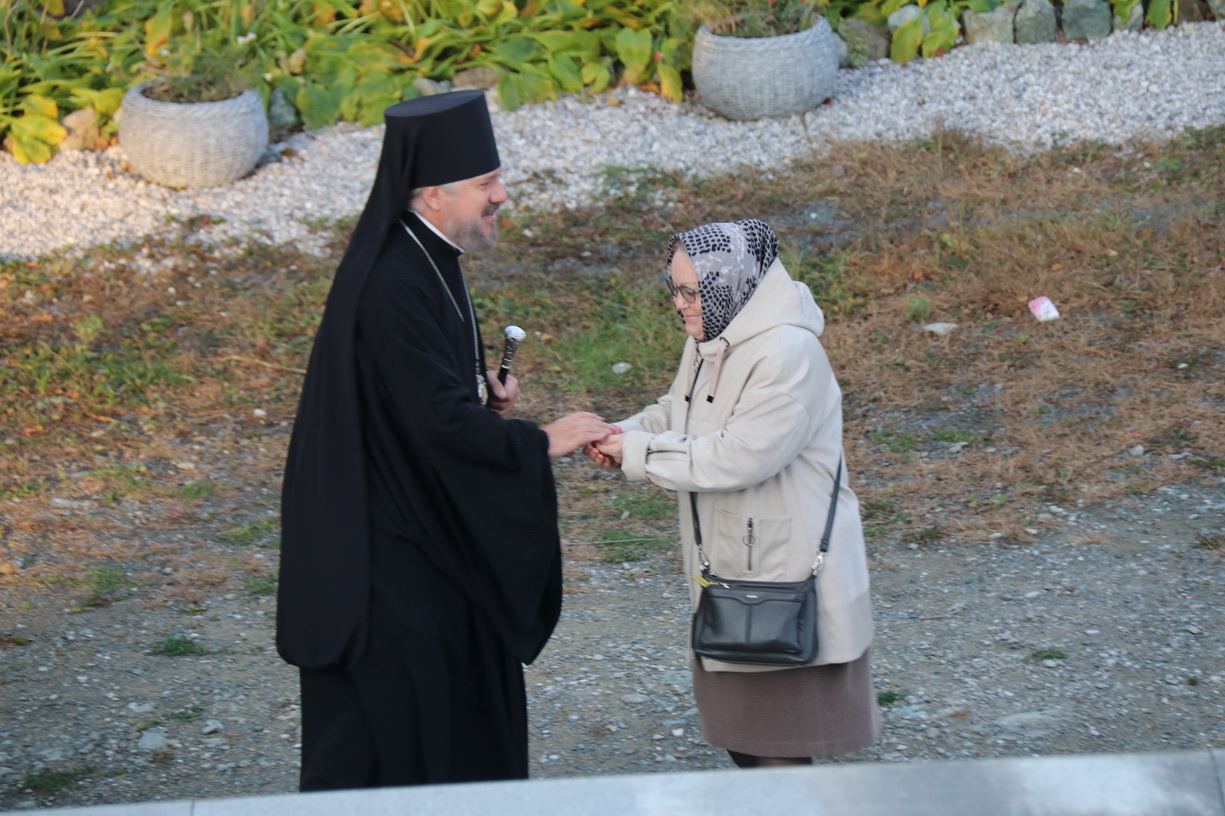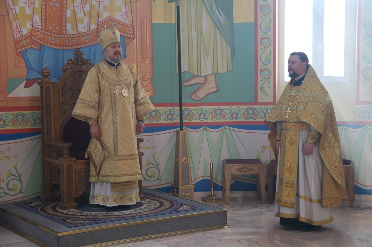 Его Преосвященству сослужили:иерей Виталий Шаркеев; иерей Андрей Попов; иерей Иоанн Гречишников и Илия Гречишников; диакон Василий Талько, клирик Пеображенского Кафедарльного собора г. Владивостока.