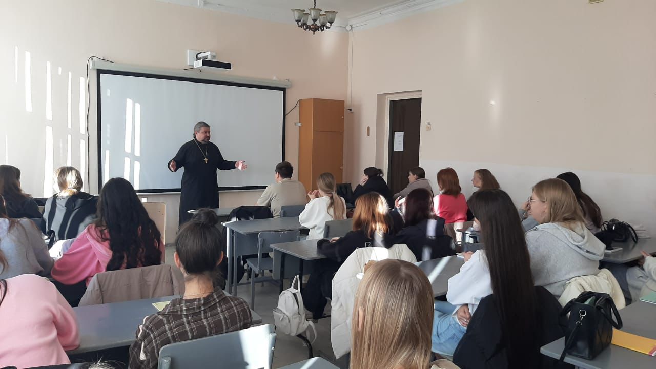 Беседа священника со студентами о семейных ценностях.