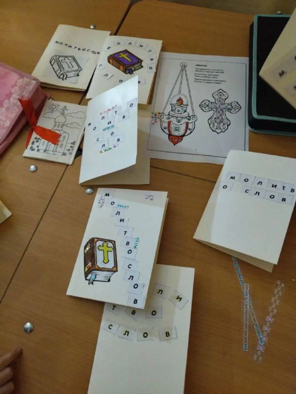 Для юных прихожан был организован мастер-класс «Мой молитвослов» по созданию собственной книги. Под руководством наставника малыши аккуратно собирали страницы будущей книги, украшали обложку и вместе вспоминали знакомые молитвы.