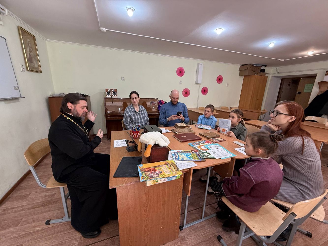Настоятель храма свт. Николая Чудотворца г. Владивостока в бухте Диомид протоиерей Даниил Нефедьев и директор воскресной школы Марина Нефедьева провели интерактивный урок «Старинные и современные православные книги».