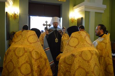 Его Высокопреосвященству сослужили: ключарь собора иеромонах Иоанн (Костин), протоиерей Игорь Шевчук, иерей Максим Точуков, иерей Владимир Плотников.