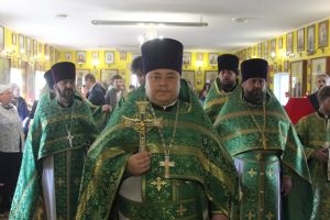 По заамвонной молитве был совершен молебен и славление Преподобному Сергию Радонежскому, по завершении которого духовенство и прихожане прошли крестным ходом вокруг храма.