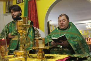 Богослужение возглавил благочинный I Владивостокского округа протоиерей Сергий Шуталев в сослужении настоятеля часовни в честь святой мученицы Татианы протоиерея Максима Романенко, настоятеля храма Порт-Артурской иконы Божией Матери протоиерея Алексия Сабанского, настоятеля храма в честь новомучеников и исповедников Церкви Русской протоиерея Димитрия Федорина, настоятеля храма в честь апостола Андрея Первозванного иерея Андрея Мельникова.