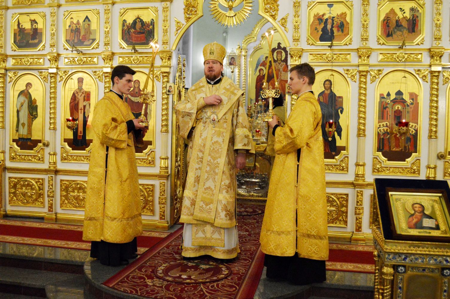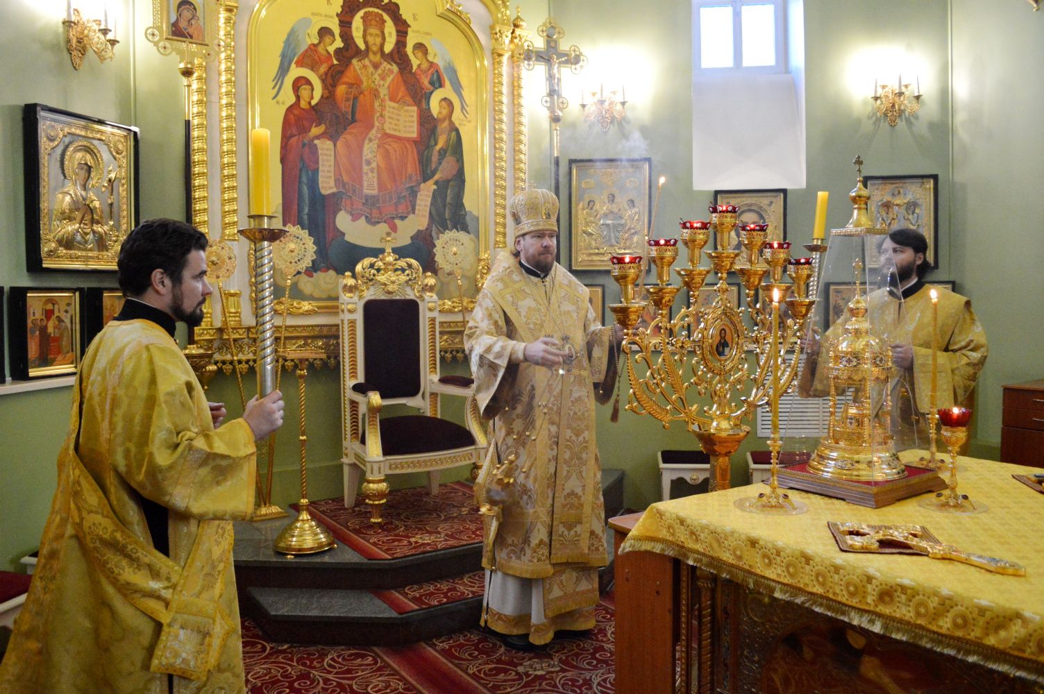 Его Высокопреосвященству сослужили: игумен Антоний (Каменчук), протоиерей Игорь Шевчук, иерей Владимир Плотников.