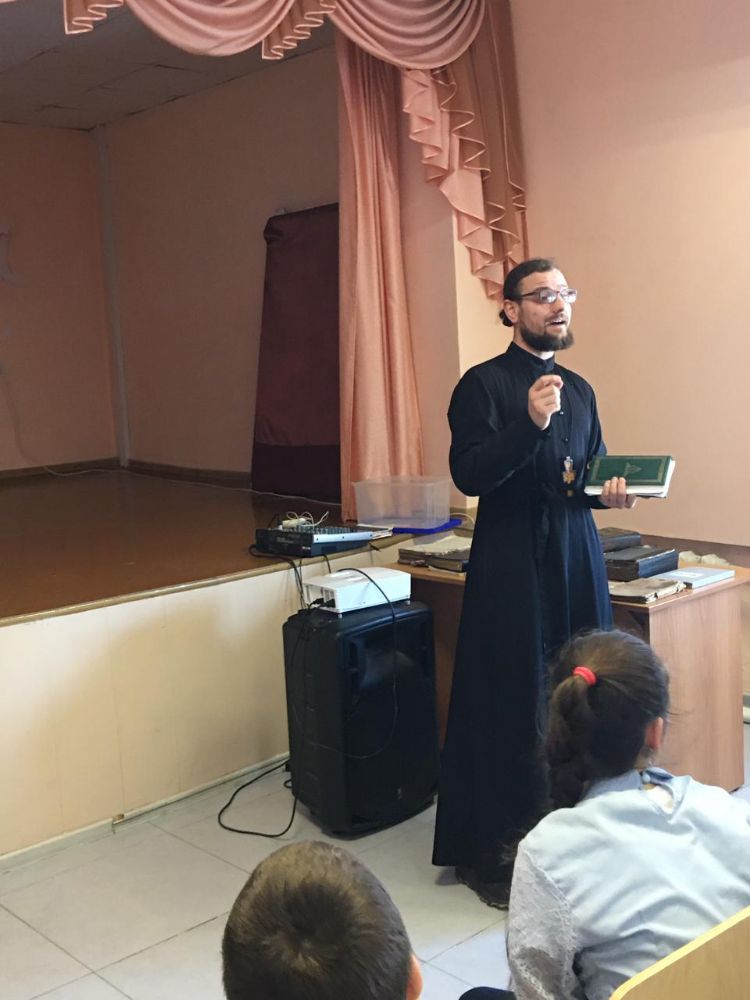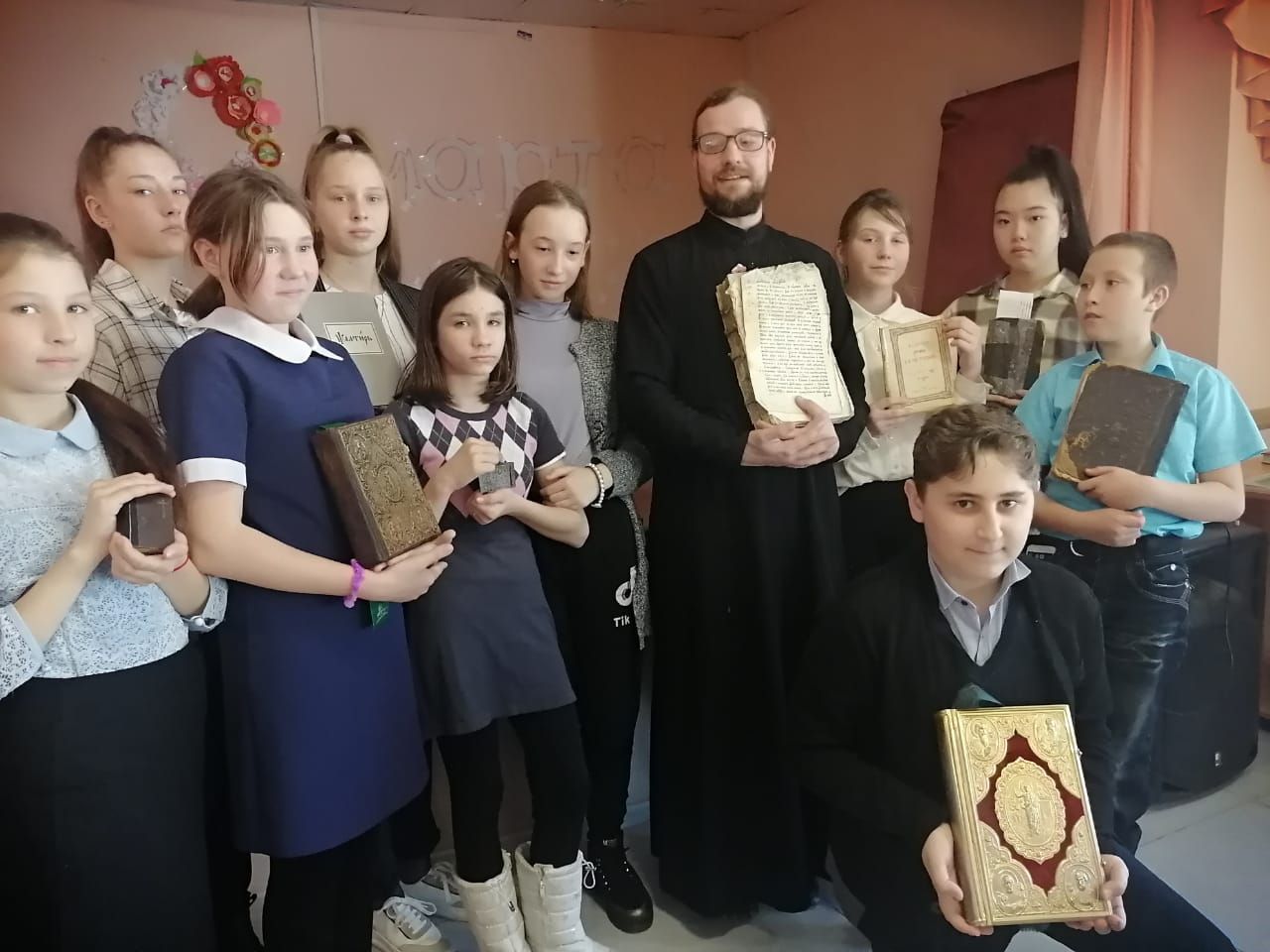 12 марта, в преддверии празднования дня Православной книги, руководитель миссионерского сектора VII благочиния, иерей Владимир Ковальчук провел встречу с тремя пятыми классами средней школы номер 6, города Дальнереченска.