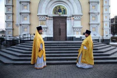 Богослужебные песнопения исполнил Митрополичий хор Покровского собора под управлением регента Елены Левада.