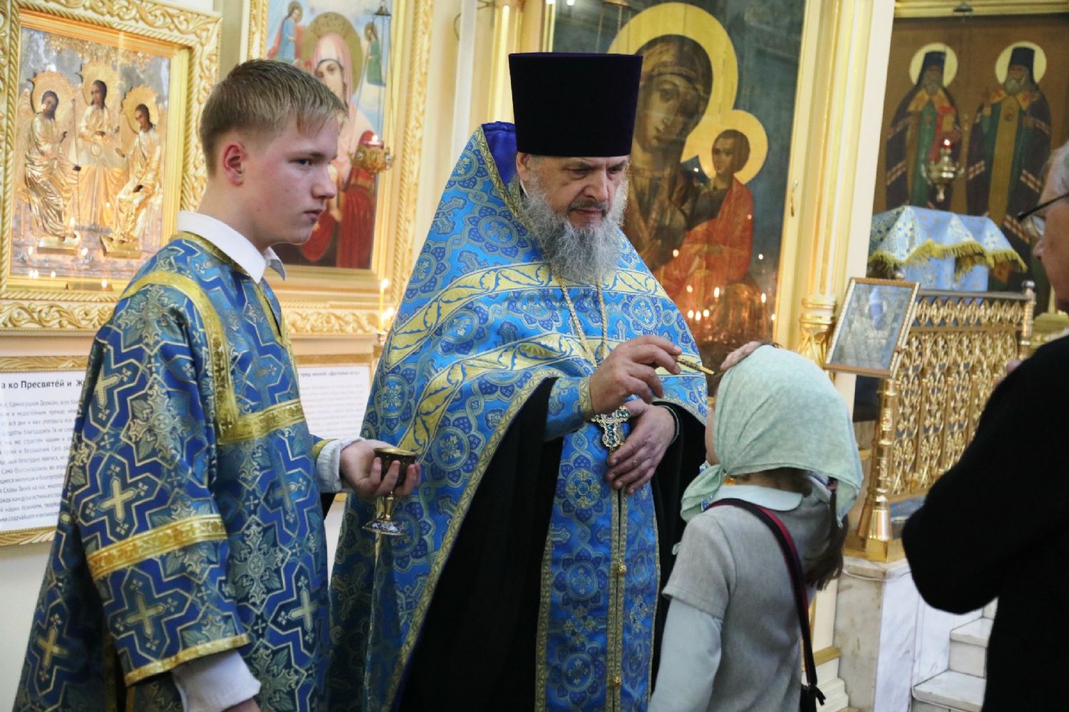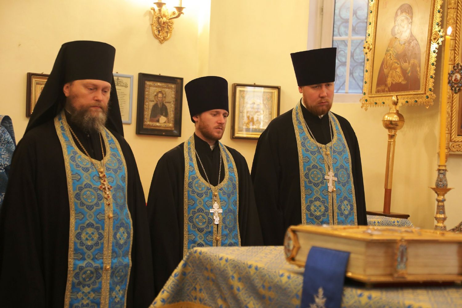 Его Высокопреосвященству сослужили: ключарь собора протоиерей Александр Талько; благочинный собора игумен Алексий (Несмеев); настоятель храма святого праведного Феодора Ушакова при Тихоокеанском высшем военно-морском училище имени О.С. Макарова иерей Александр Жилин; ответственный за организацию архиерейских богослужений иерей Дионисий Ищенко; иерей Сергий Зверев; заместитель благочинного I Владивостокского благочиния иерей Михаил Тутаев.