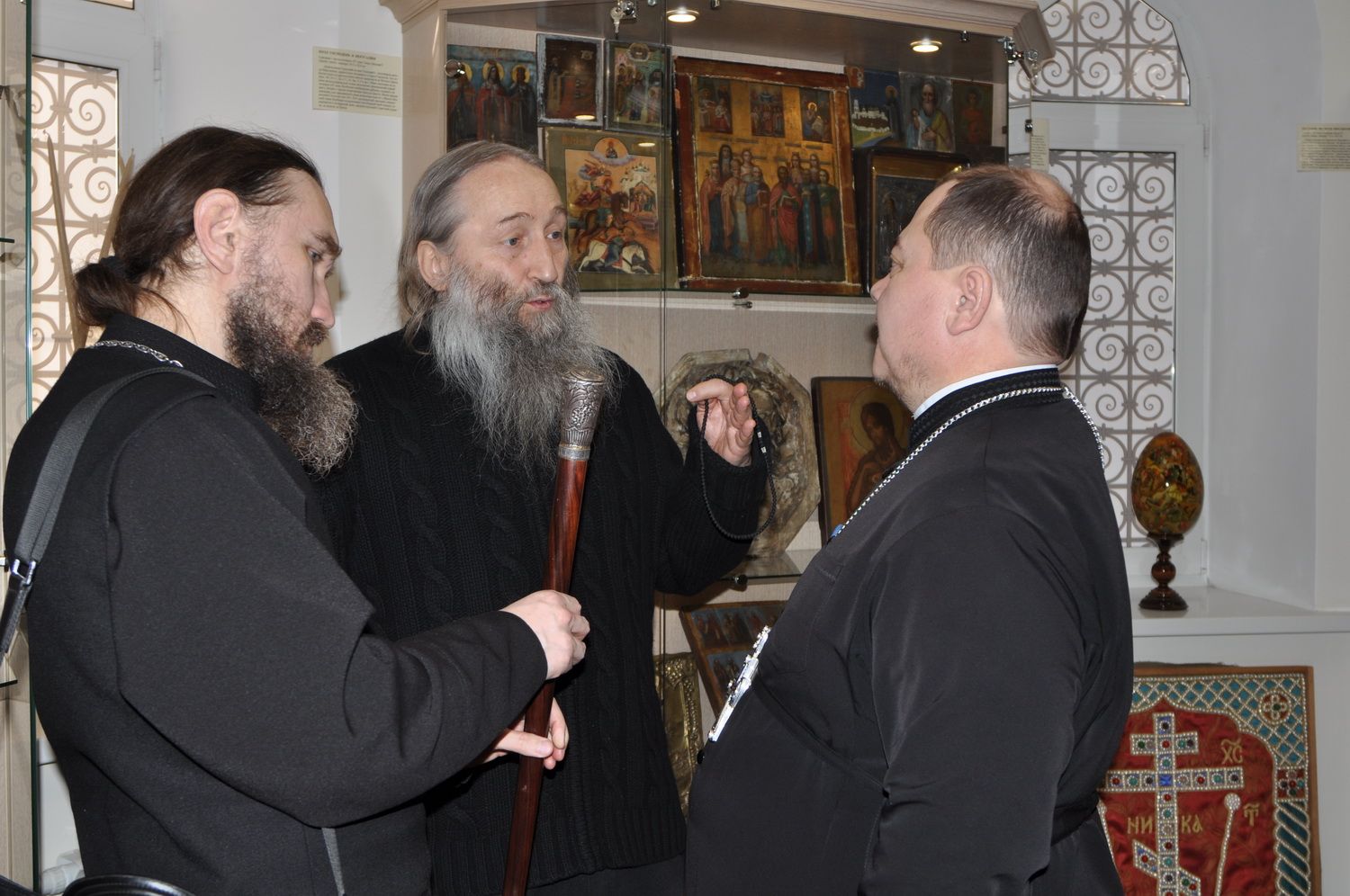 Владыка провел экскурсию по Духовно-просветительскому центру, представив вниманию посетителей коллекции древнерусской иконы, старинных богослужебных облачений и утвари, старинной русской книги, а также современной живописи и графики. В ходе экскурсии сотрудники епархиального управления и музея показали гостям разнообразные экспонаты и подробно рассказали о каждом из них. С искренним энтузиазмом делились своими знаниями и опытом включения музея в миссионерскую работу.
