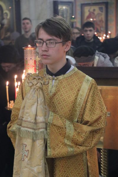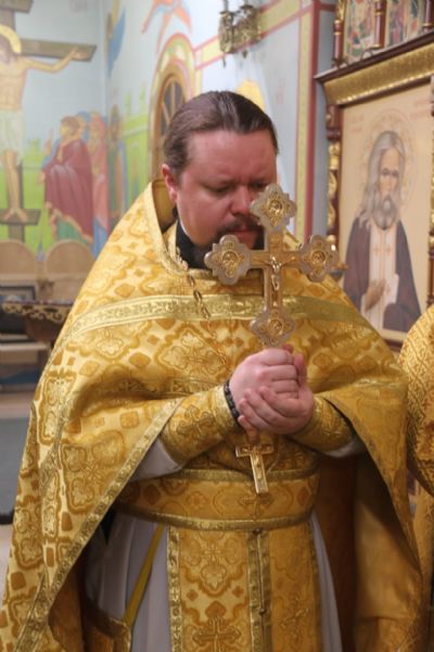 Его Преосвященству сослужили: иерей Виталий Шаркеев и иерей Андрей Попов.