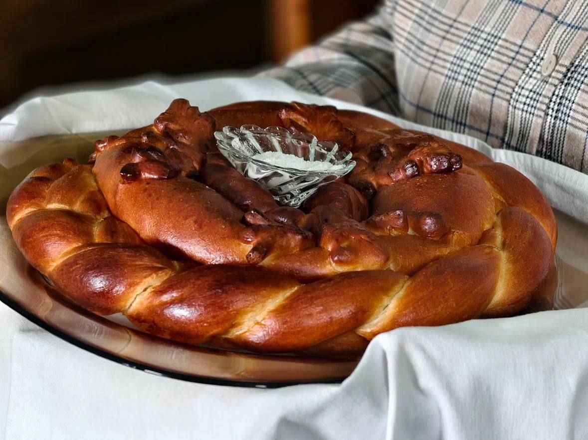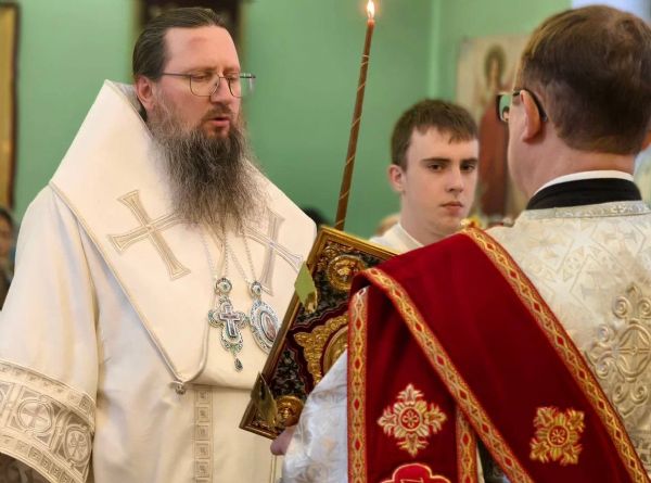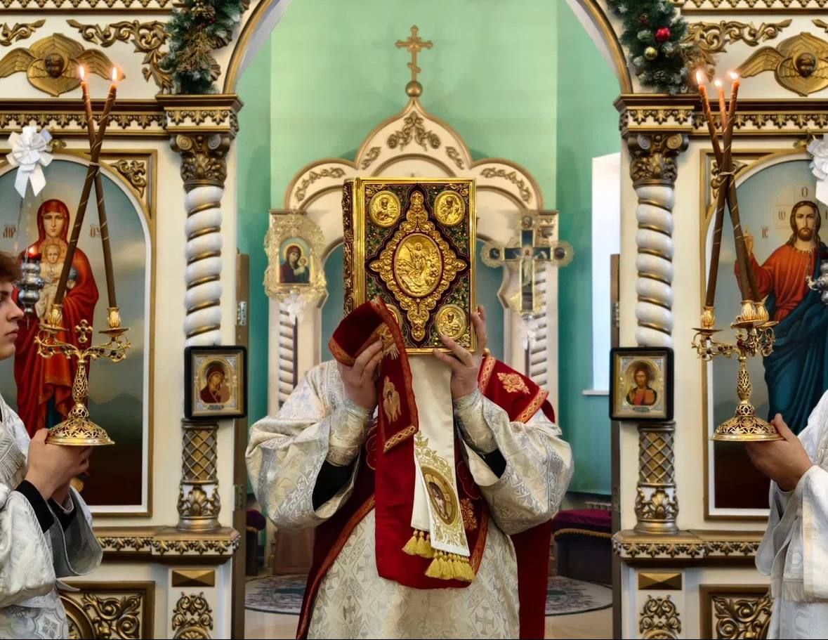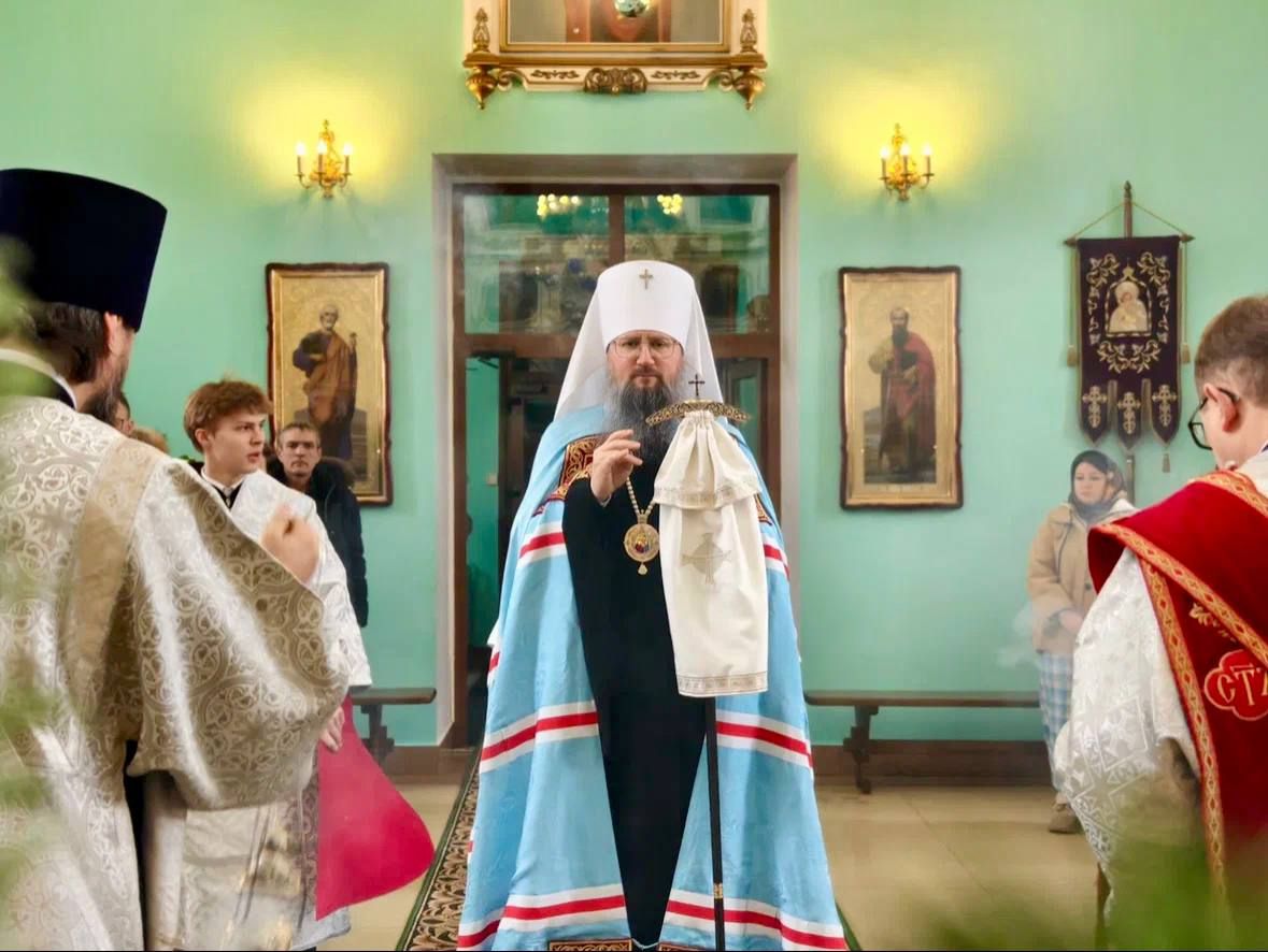 На входе в храм прихожане встретили владыку хлебом-солью.