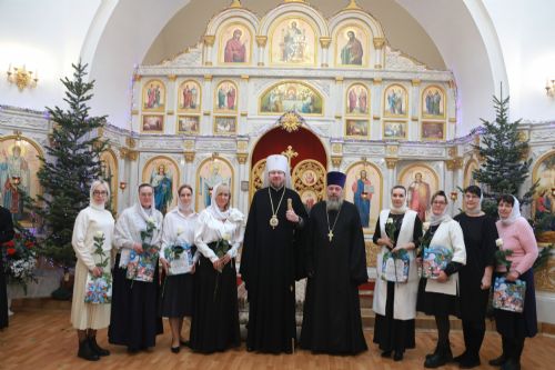 По окончании богослужения состоялось выступление воспитанников воскресной школы храма, которые прочитали стихи и пропели песнопения. Владыка вручил цветы участвующим в выступлении воспитанницам и их педагогам, а также труженницам храма. Затем состоялось общее фотографирование. В завершении архипастырского визита митрополит Владимир вручил сладкие подарки детям и преподал благословение.