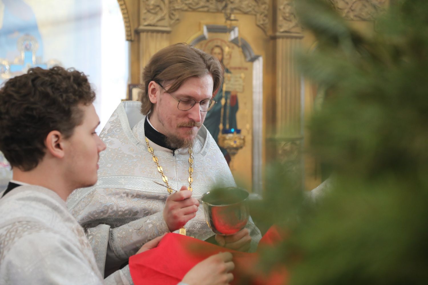 Его Высокопреосвященству сослужили: благочинный Уссурийского благочиния, настоятель Никольского храма г. Уссурийска протоиерей Андрей Машанов; настоятель храма протоиерей Сергий Якутов; благочинный Покровского благочиния, настоятель храма Серафима Саровского г. Уссурийска протоиерей Стефан Цуркан; настоятель храма Александра Невского при Уссурийском Суворовском военном училище иерей Павел Моисеев; настоятель храма пророка Илии при 83-й отдельной десантно-штурмовой бригаде г. Уссурийска иерей Сергий Качев; иеромонах Платон (Карпов); настоятель храма всех святых, во всем мире просиявших, при Арсенале ракетного и артиллерийского вооружения Центра материально-технического обеспечения Восточного военного округа иерей Глеб Журавлев; ответственный за организацию архиерейских богослужений в храмах Владивостокской епархии иерей Дионисий Ищенко.