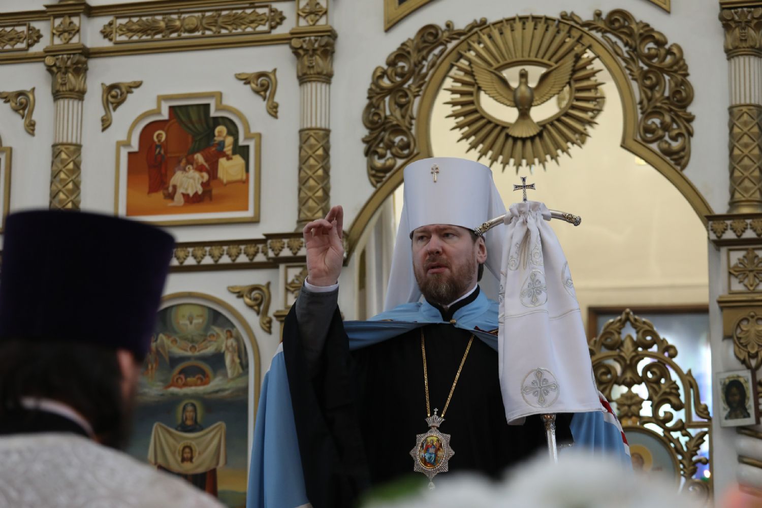 На сугубой ектении глава Приморской митрополии вознес молитвы ко Господу о Святой Руси и завершении строительства Спасо-Преображенского кафедрального собора г. Владивостока.