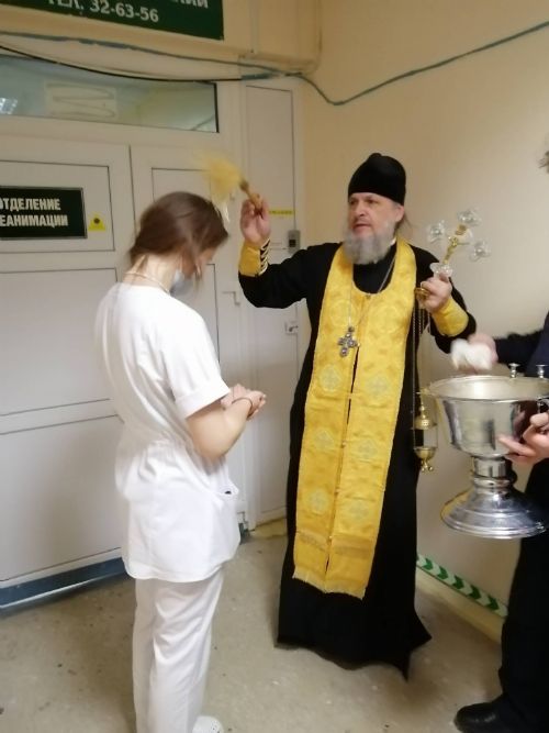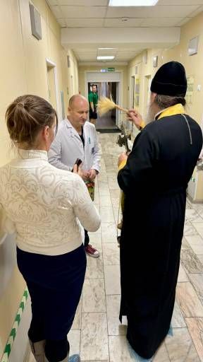 По традиции все отделения больницы были окроплены Крещенской водой, добровольцы раздали сладкие подарки и записали имена на молебен о здравии.
