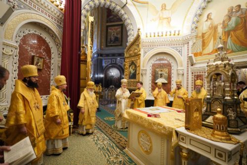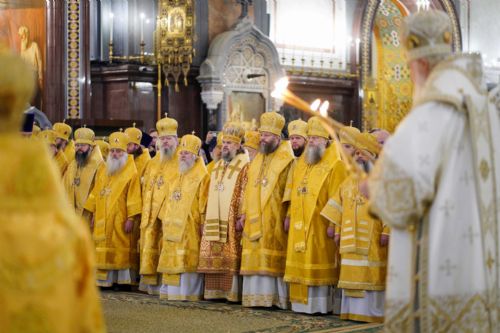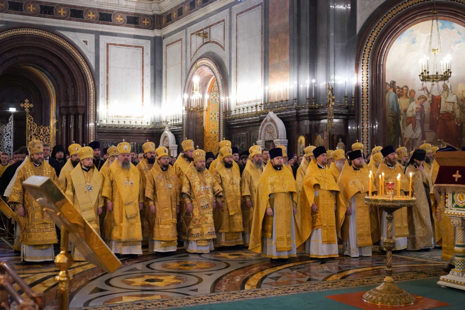 В храме молились участники XXХII Международных Рождественских образовательных чтений, члены делегации Крымской митрополии, игумении женских монастырей, руководители и сотрудники синодальных учреждений.