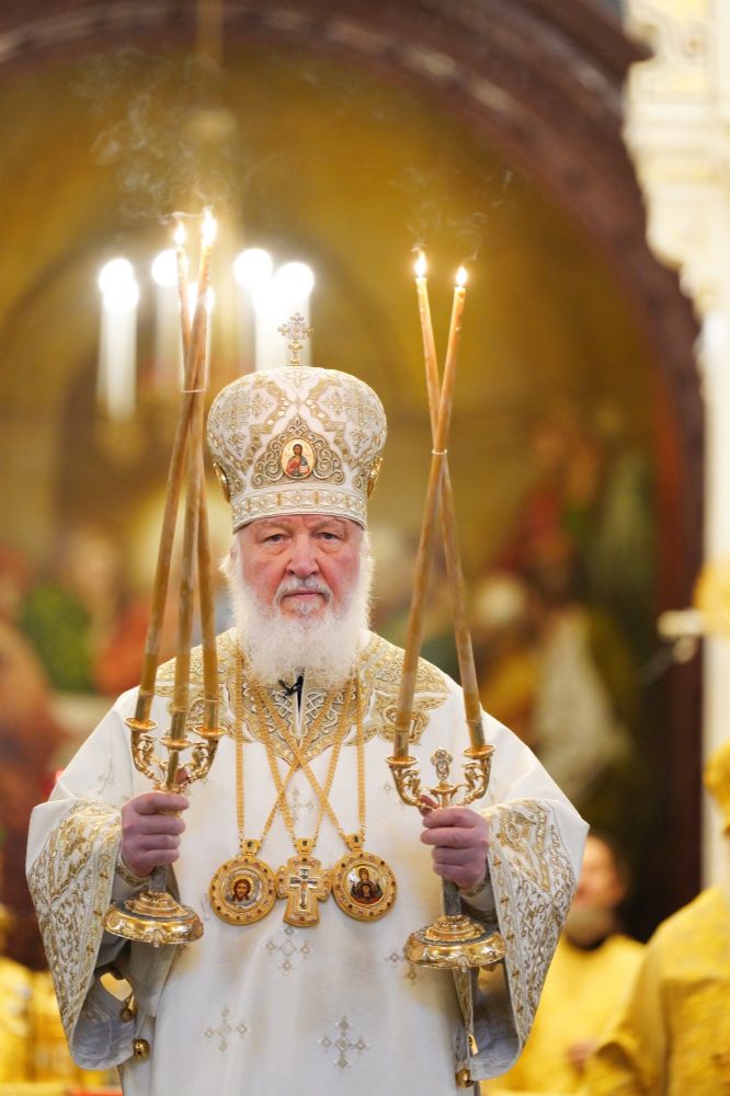 На сугубой ектении были вознесены особые прошения, Предстоятель Русской Православной Церкви прочитал молитву о Святой Руси.