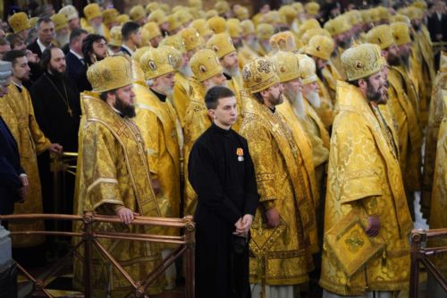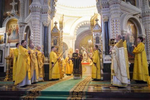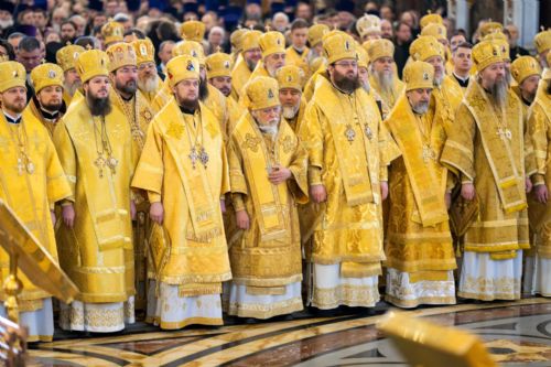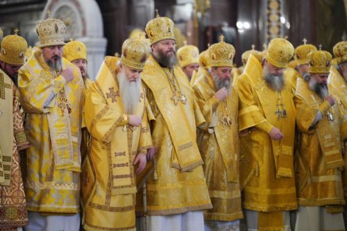 В пятнадцатую годовщину интронизации Святейшего Патриарха Кирилла архипастыри Приморской митрополии сослужили Предстоятелю Русской Церкви за Литургией в Храме Христа Спасителя