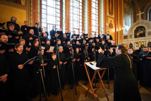 Богослужебные песнопения исполнили хор Храма Христа Спасителя (регент — И.Б. Толкачев) и хор духовенства Московской митрополии под управлением священника Сергия Голева.