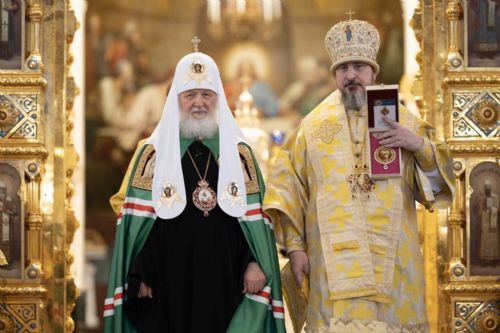 Затем состоялось вручение церковных наград. Указом Святейшего Патриарха Кирилла Преосвященные архипастыри, отметившие памятные даты и особо потрудившиеся на благо Святой Церкви, были удостоены:
