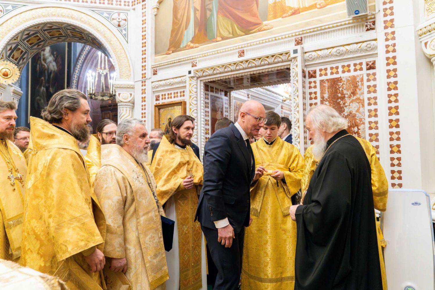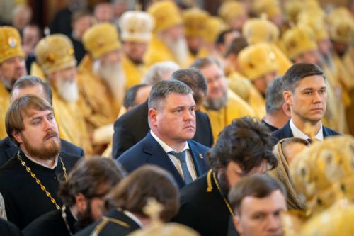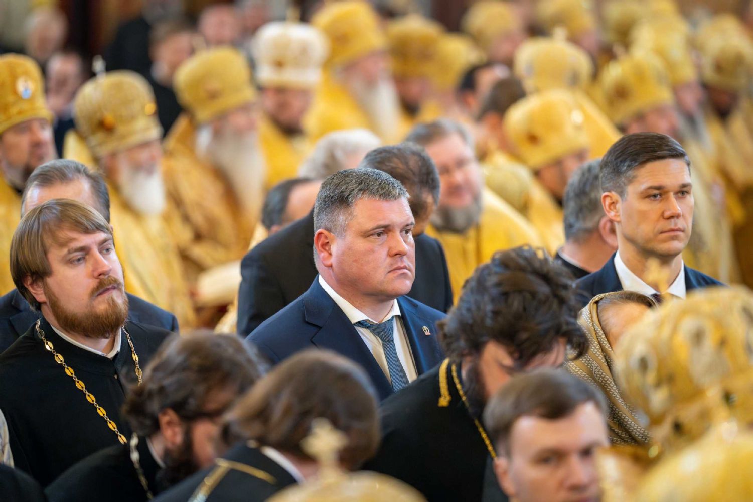 Торжественное богослужение посетили: заместитель председателя Государственной Думы ФС РФ А.Ю. Кузнецова; председатель Либерально-демократической партии России, председатель Комитета по международным делам Государственной Думы ФС РФ Л.Э. Слуцкий; председатель Комитета Государственной Думы ФС РФ по вопросам собственности, земельным и имущественным отношениям С.А. Гаврилов; губернатор Санкт-Петербурга А.Д. Беглов; губернатор Смоленской области В.Н. Анохин; государственный секретарь Союзного государства России и Беларуси Д.Ф. Мезенцев; депутат Государственной Думы ФС РФ, советник мэра г. Москвы, советник Патриарха Московского и всея Руси по вопросам строительства, куратор Программы строительства православных храмов в г. Москве В.И. Ресин; председатель Московской городской Думы А.В. Шапошников; председатель Попечительского совета Фонда Андрея Первозванного В.И. Якунин; вице-президент Российского союза химиков А.Г. Гурьев; президент Российской ассоциации производителей минеральных удобрений А.А. Гурьев.