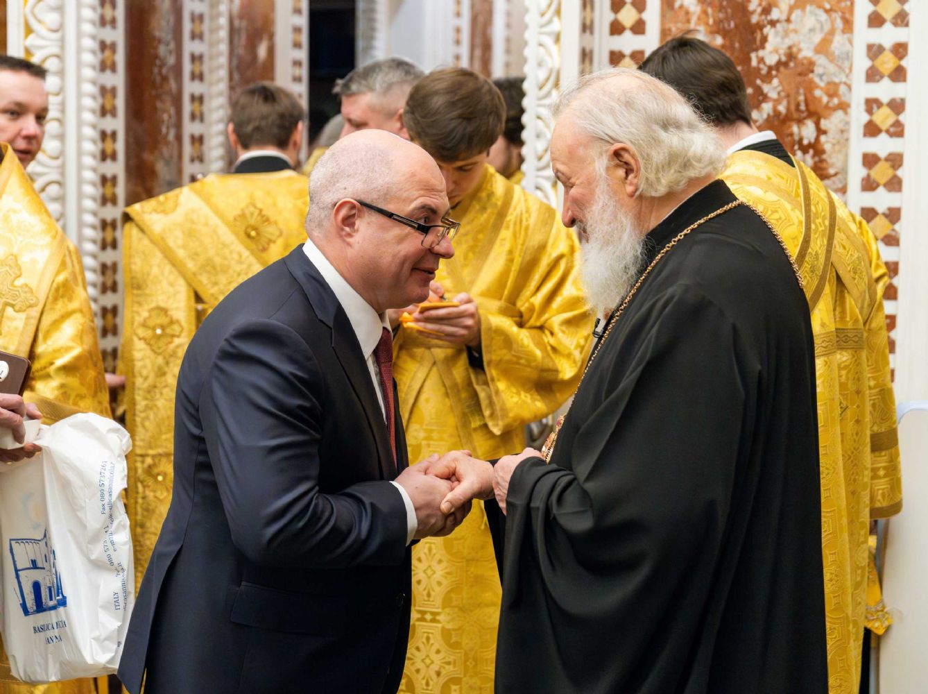 Далее Святейшего Владыку поздравил заместитель председателя Правительства Российской Федерации Д.Н. Чернышенко.