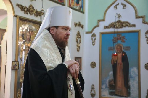 Перед совершением заупокойного богослужения митрополит Владимир обратился к верующим с архипастырским словом, а по его окончании попрощался с усопшим клириком.