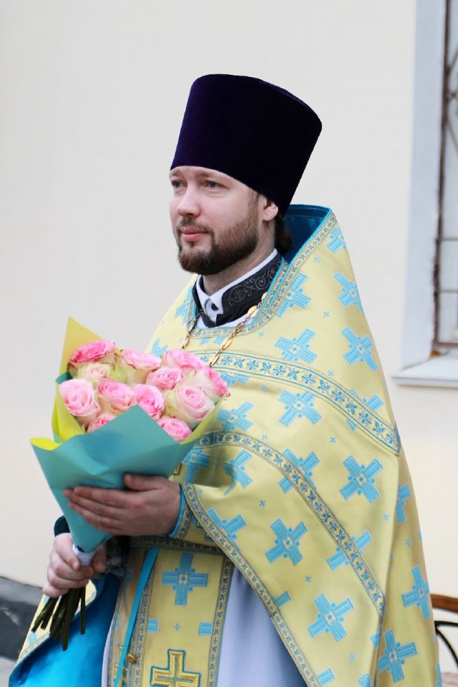 Настоятель храма иерей Андрей Тищук поблагодарил владыку Владимира за архипастырский визит, поздравил с праздником Сретения Господня и преподнес букет цветов.