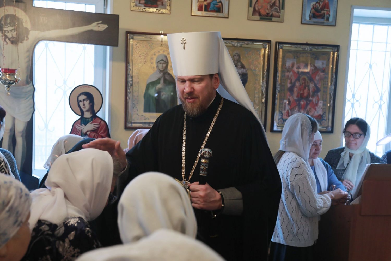 Поблагодарив за поздравление, митрополит Владимир обратился к молящимся с архипастырским словом.